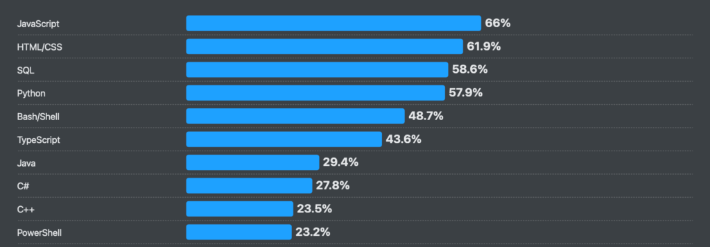 Stack Overflow Developer Survey 2025 backs this up: #1 JavaScript is among the most used languages, while #6 TypeScript consistently ranks as one of the most loved.